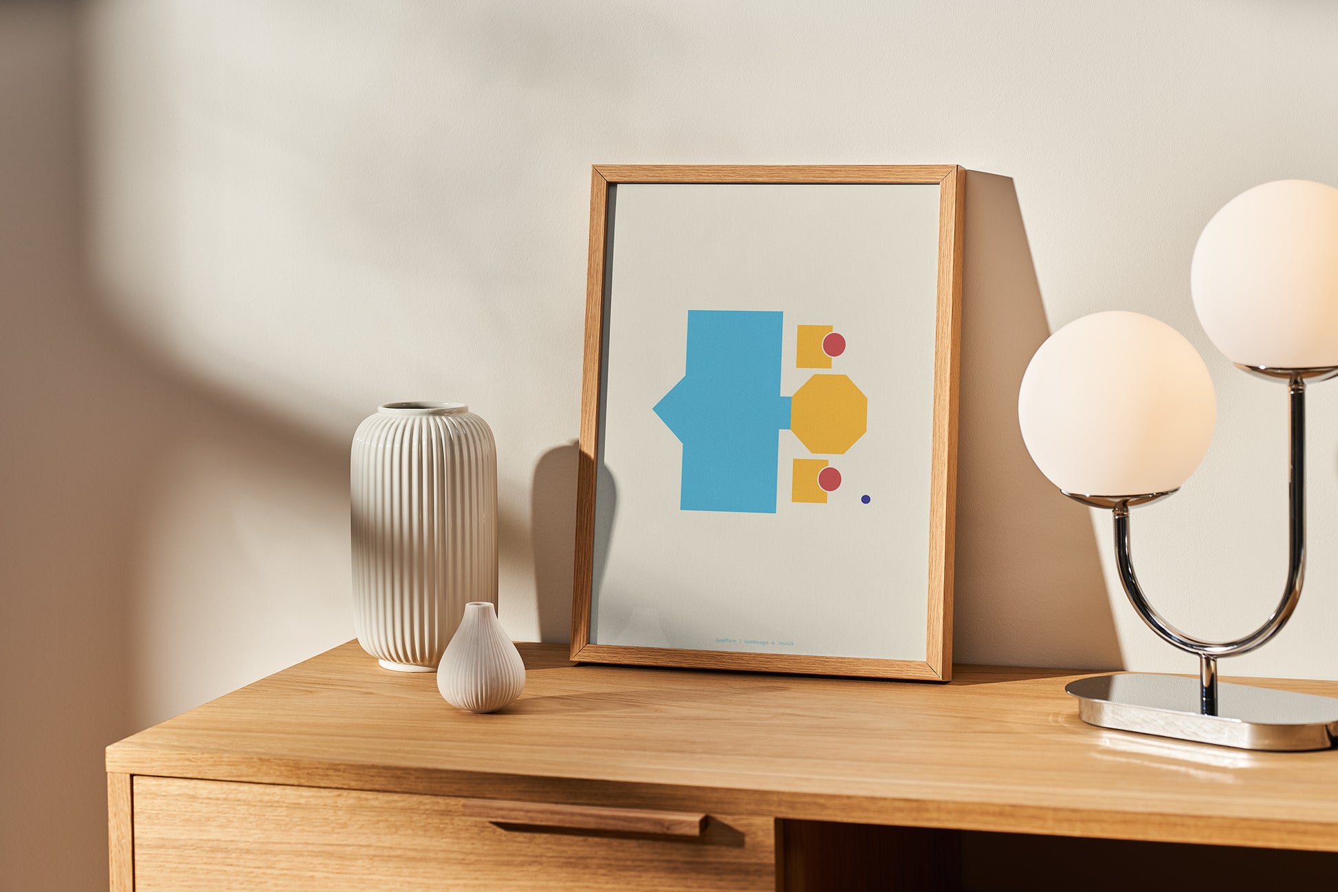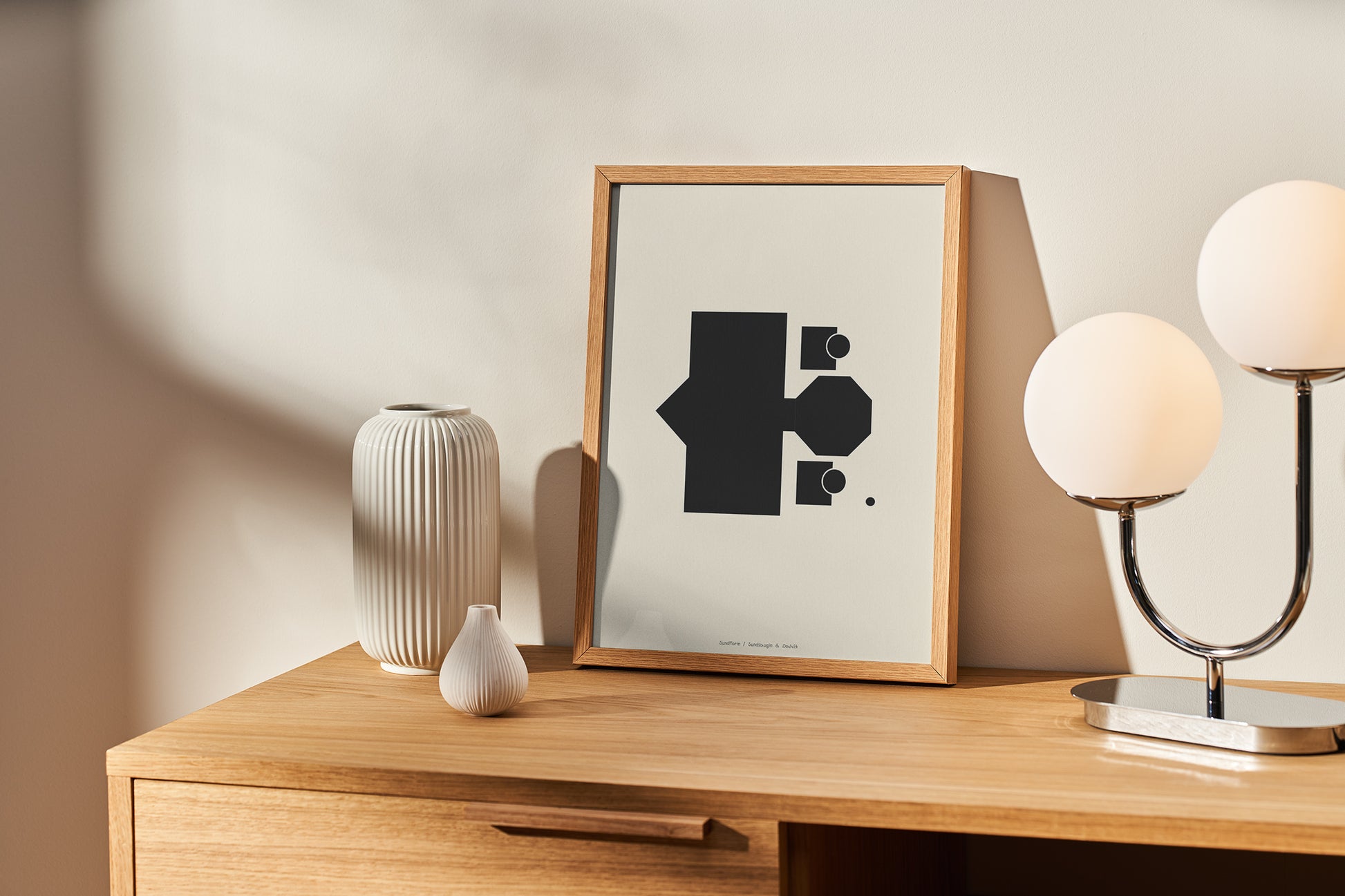 Með því að velja innrammaða mynd kemur hún í fallegum og ljósum eikar ramma með gleri.